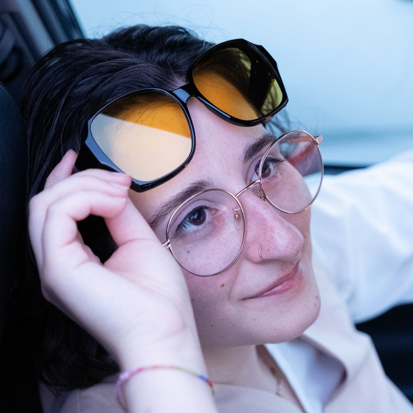 Fini le casse-tête des lunettes à alterner selon les sorties. OptiShade® a été conçue pour s’adapter à (presque) toutes les formes de montures de vue, même larges ou épaisses.